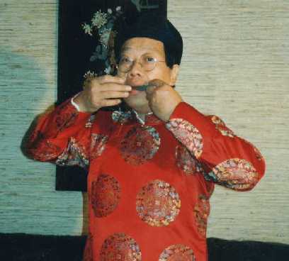 on traditional Vietnamese instruments. He learned Jew's harp playing from John Wright. Mostly he plays the Jew's harp alone, but