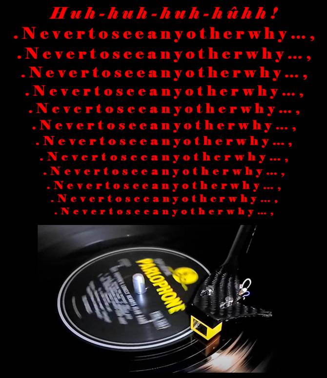 iemand bereid om dat scherpe gekrakeel van «Nevertoseeanyotherwhy…» aan te horen? Ik