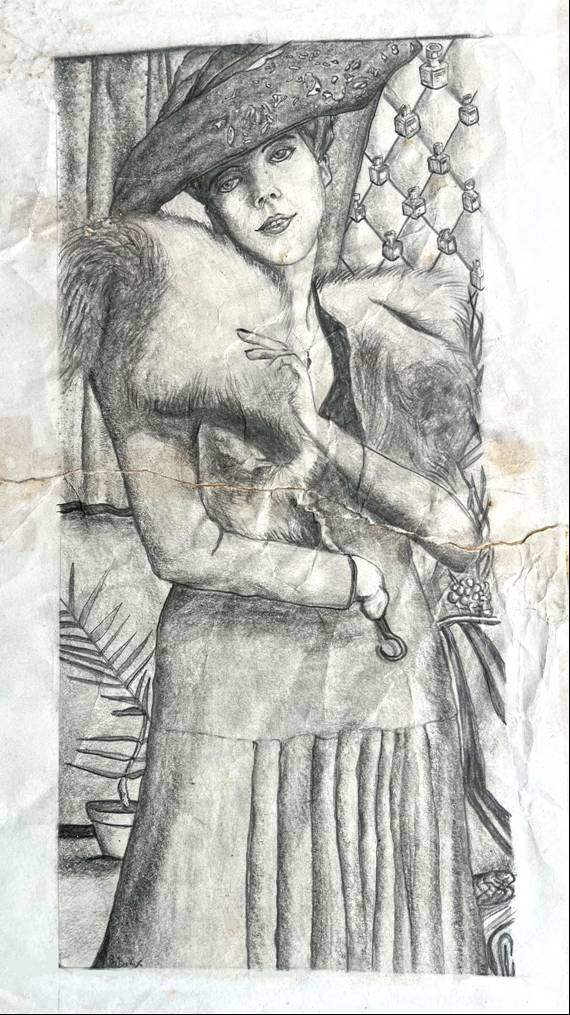 (de tekening is ooit door iemand in een vlaag van woede doormidden gescheurd)