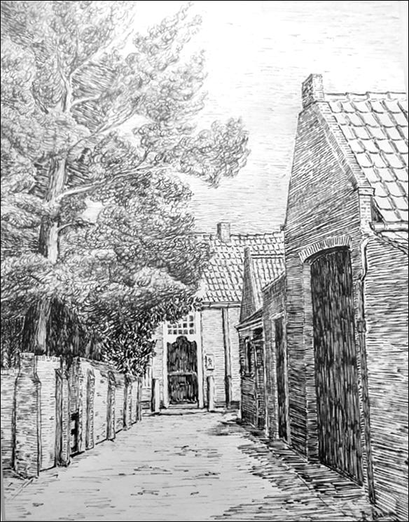 «Het 1 Novemberstraatje te Sluis» - Karel Bakx – pentekening datum en formaat niet bekend