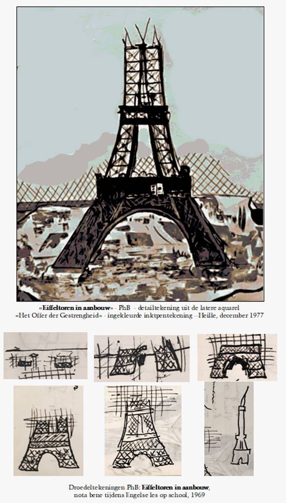 met verschillende bouwstadia van de Eiffeltoren, die ik in een van